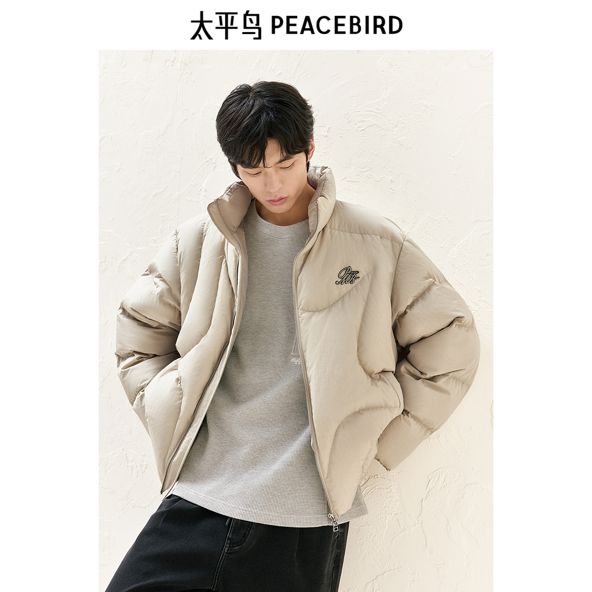 太平鸟男装 美式复古面包服冬季宽松潮流立领休闲羽绒防寒服男