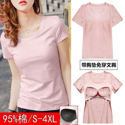 带胸垫短袖t恤女宽松2024夏新款休闲百搭洋气显瘦女士t恤短袖上衣