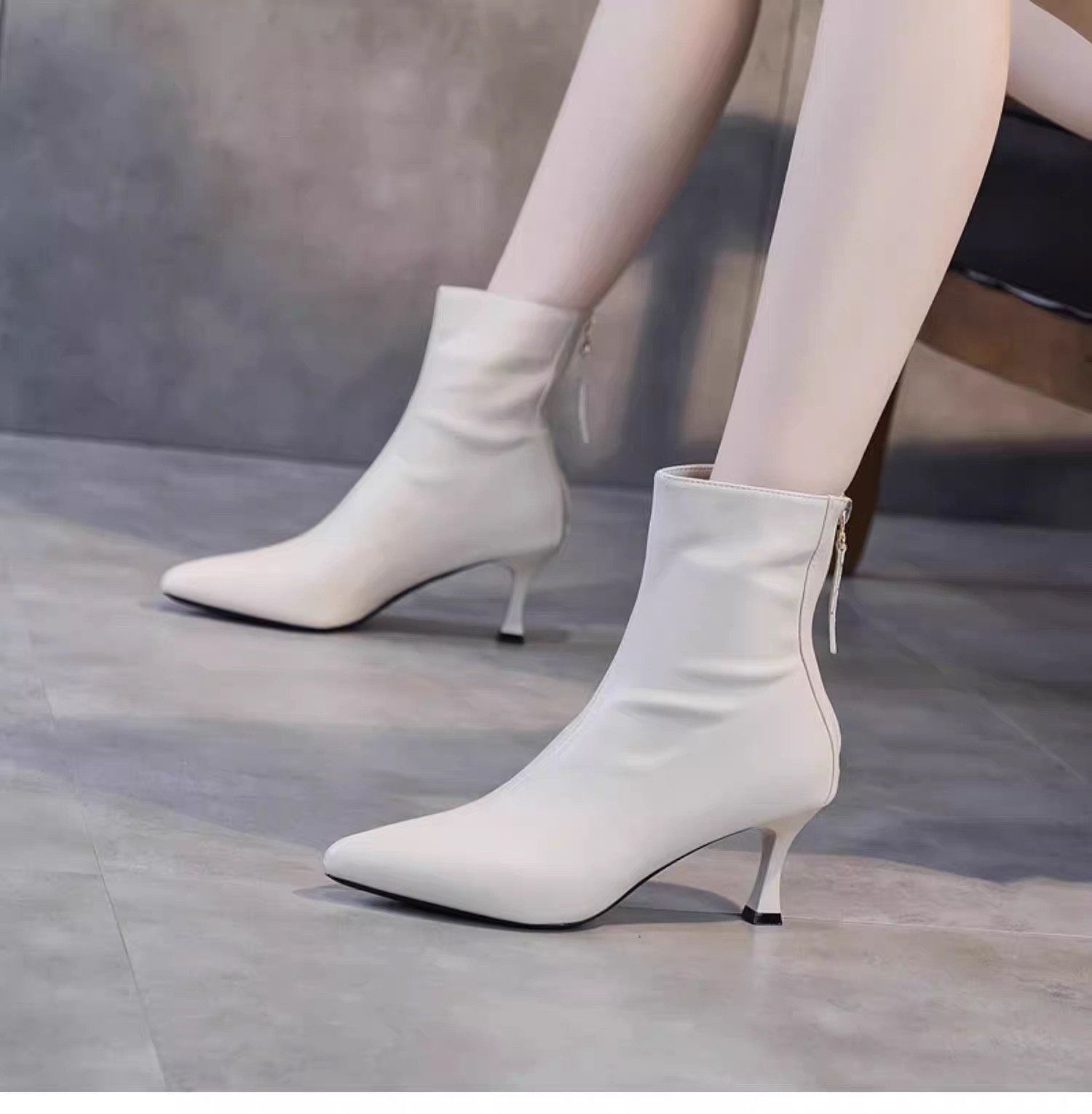 2025时装女靴细跟法式小短靴瘦瘦靴高跟鞋女秋冬时尚百搭通勤软皮