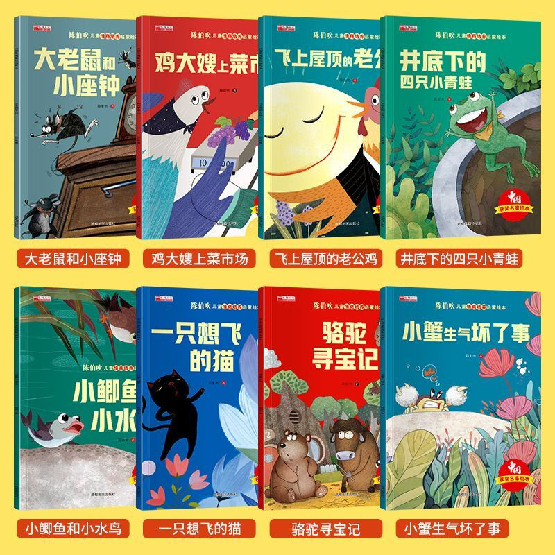 陈伯吹儿童情商培养启蒙绘本全8册 井底下的四只小青蛙大老鼠和小座钟骆驼寻宝记一只想飞的猫小蟹生气坏了事鸡大嫂上菜市场