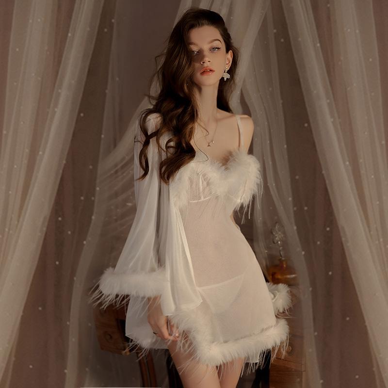 凯朱莉性感睡衣女款春秋2025新款小胸纯欲网纱高级感吊带睡裙冬季