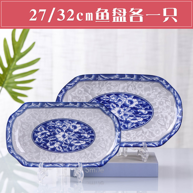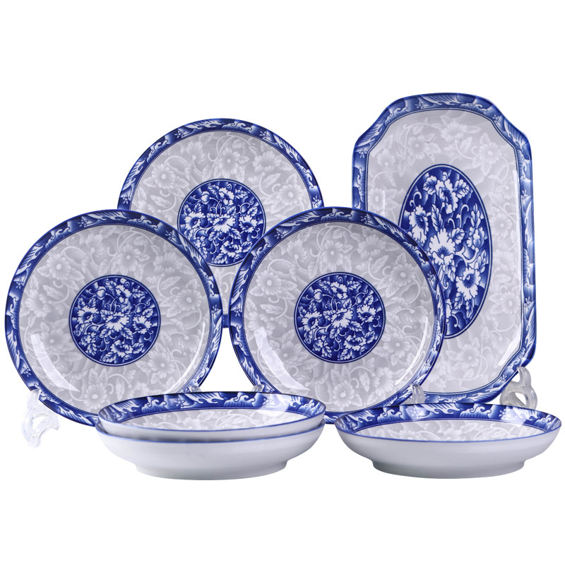 青花瓷盘子套装景德镇餐具瓷器组合可微波菜盘饭盘汤盘创意鱼盘子
