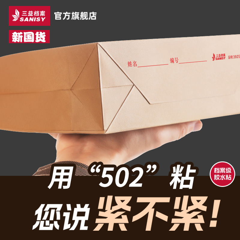 三益档案10个A4加大加厚牛皮纸档案袋3605办公360g侧宽5CM大容量纸袋公文袋票据袋收纳纸袋保护袋科目分类