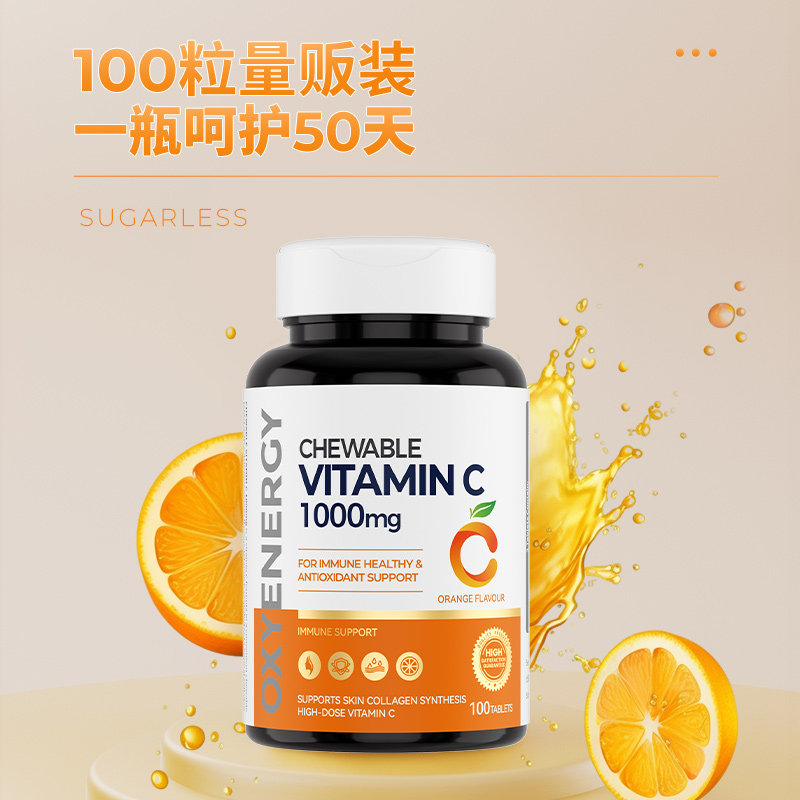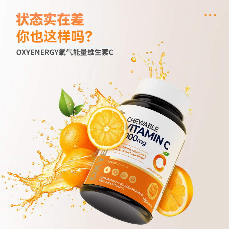 Oxyenergy氧气能量维生素c咀嚼片儿童成人vc含片非泡腾片官方正品