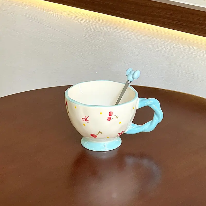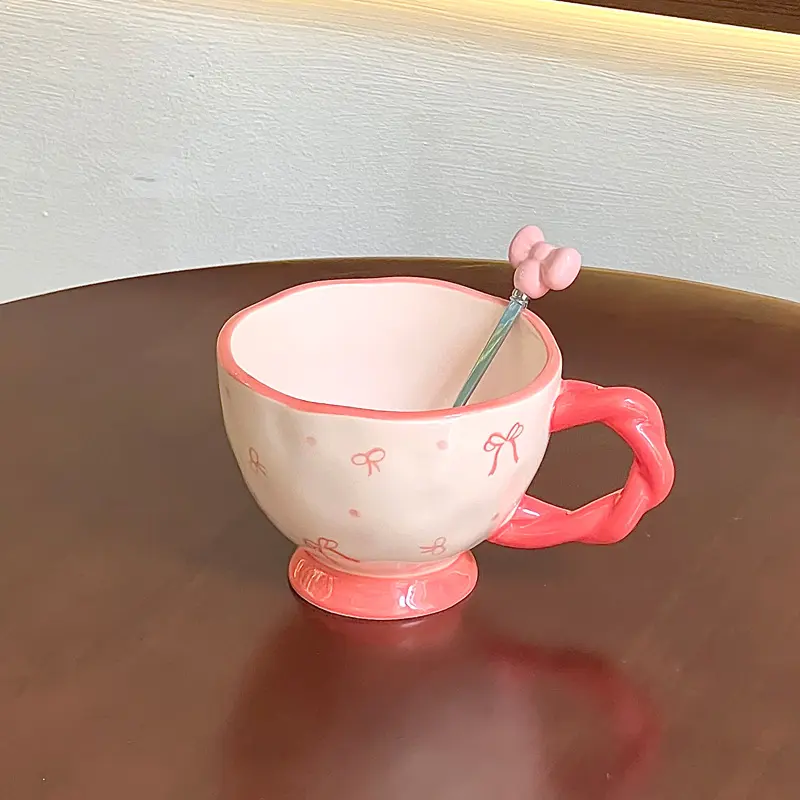 in风手作粉色结杯小众陶瓷水杯生日礼物实用闺蜜马克杯白瓷卡通