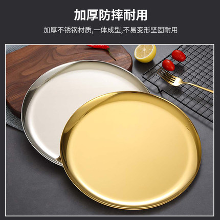 韩式304不锈钢圆盘金色咖啡厅托盘水果盘蛋糕盘骨碟菜碟浅烤肉盘