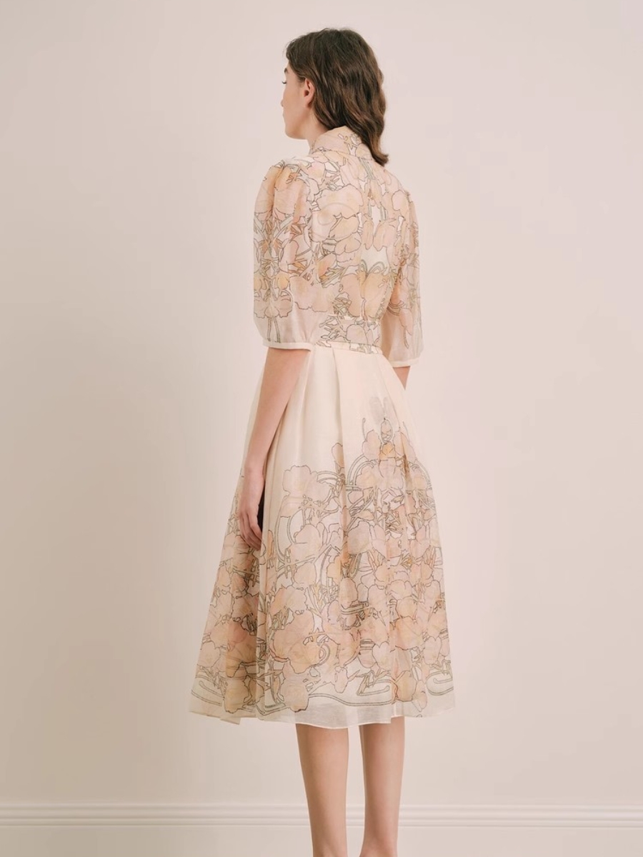 商场同款高端定制夏季新品月见草印花亚麻真丝衬衫女1C34230050