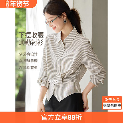 沫晗依美法式气质女士衬衫上衣2025秋季爆款通勤小衫收腰显瘦衬衣