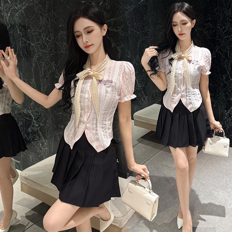 足浴技师工作服女新款气质减龄足疗沐足前台衬衫学院风百褶裙套装