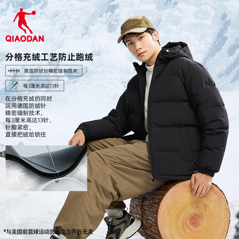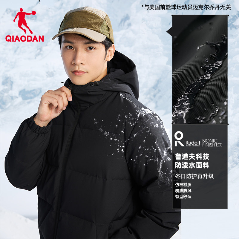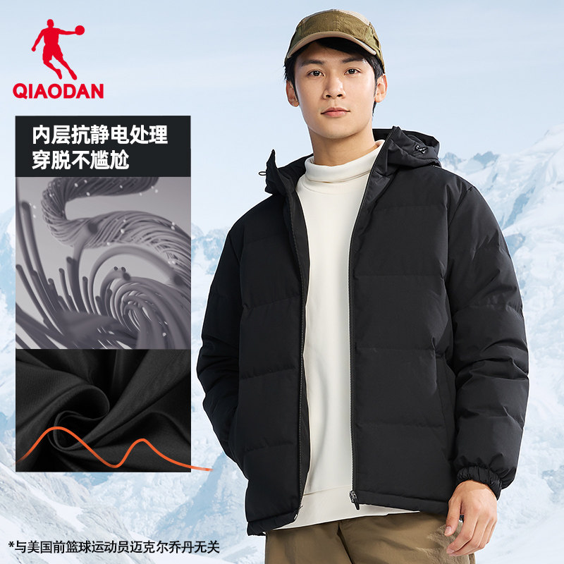 乔丹轻薄黑色羽绒服男士冬季防寒保暖防风防泼水连帽短款外套上衣
