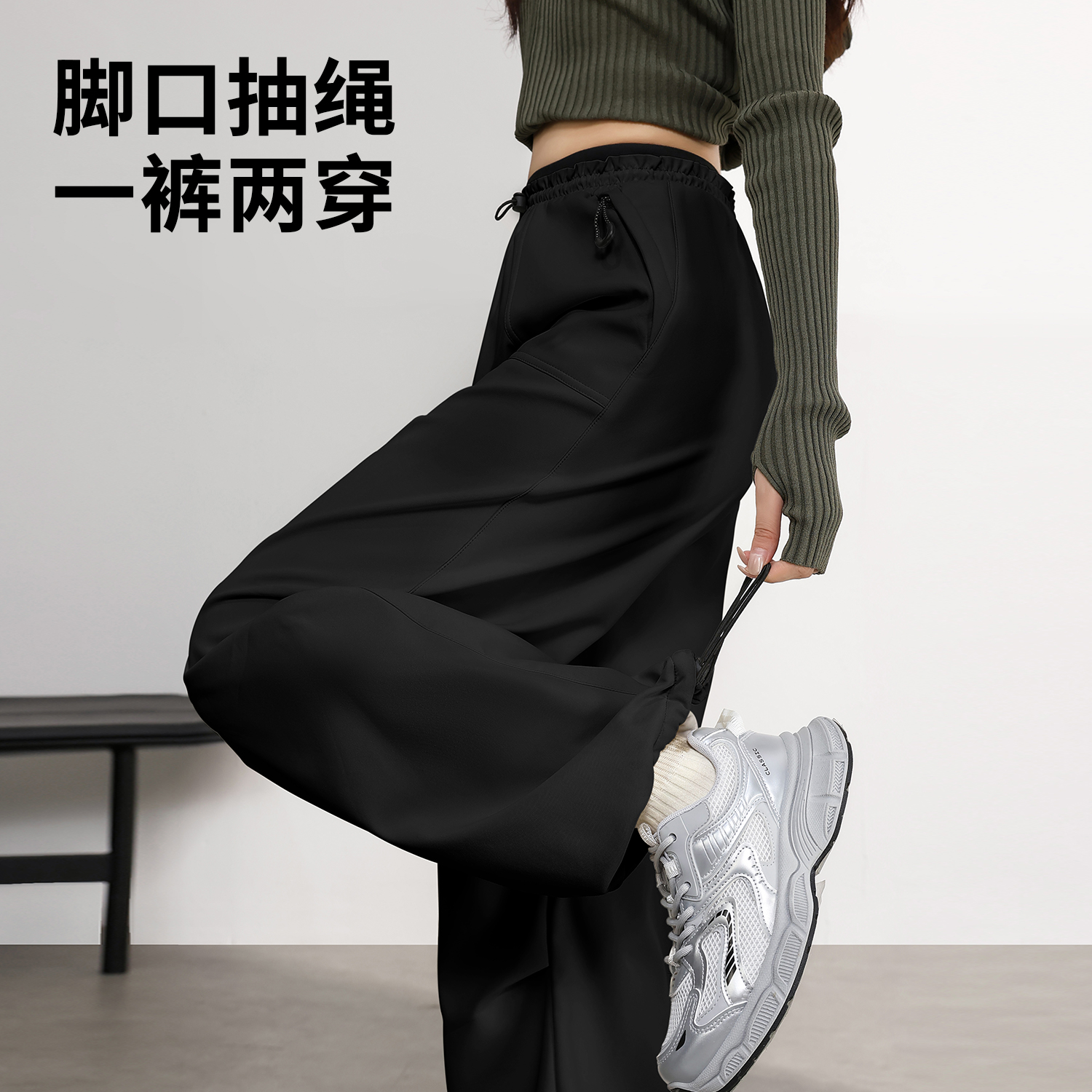 班尼路软壳冲锋登山裤女秋冬高腰宽松休闲薄绒保暖工装运动卫裤N