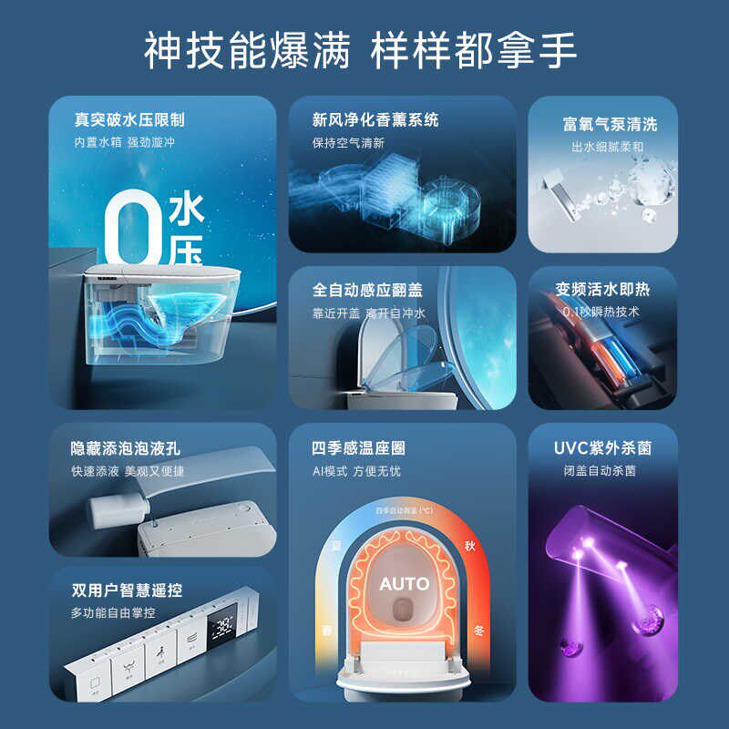 【无需预埋水箱】悬空无水压限制内置泡沫盾全自动壁挂式智能马桶