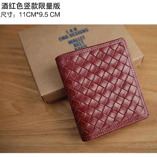 蓝皮具原创男士真皮短款钱包真皮手工编织时尚潮流送礼物牛皮钱夹