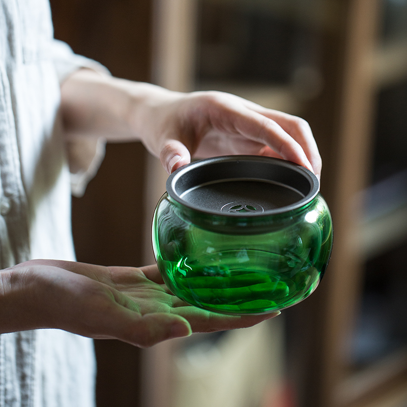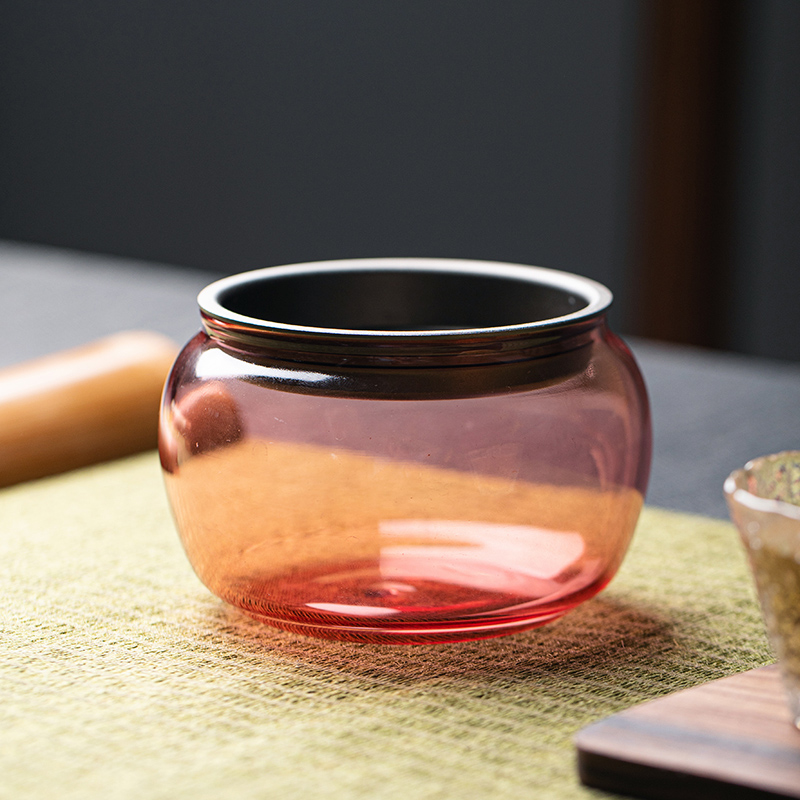 透明玻璃茶具日式建水带盖茶洗复古铁盖茶渣缸壶垫小茶桶茶海壶承