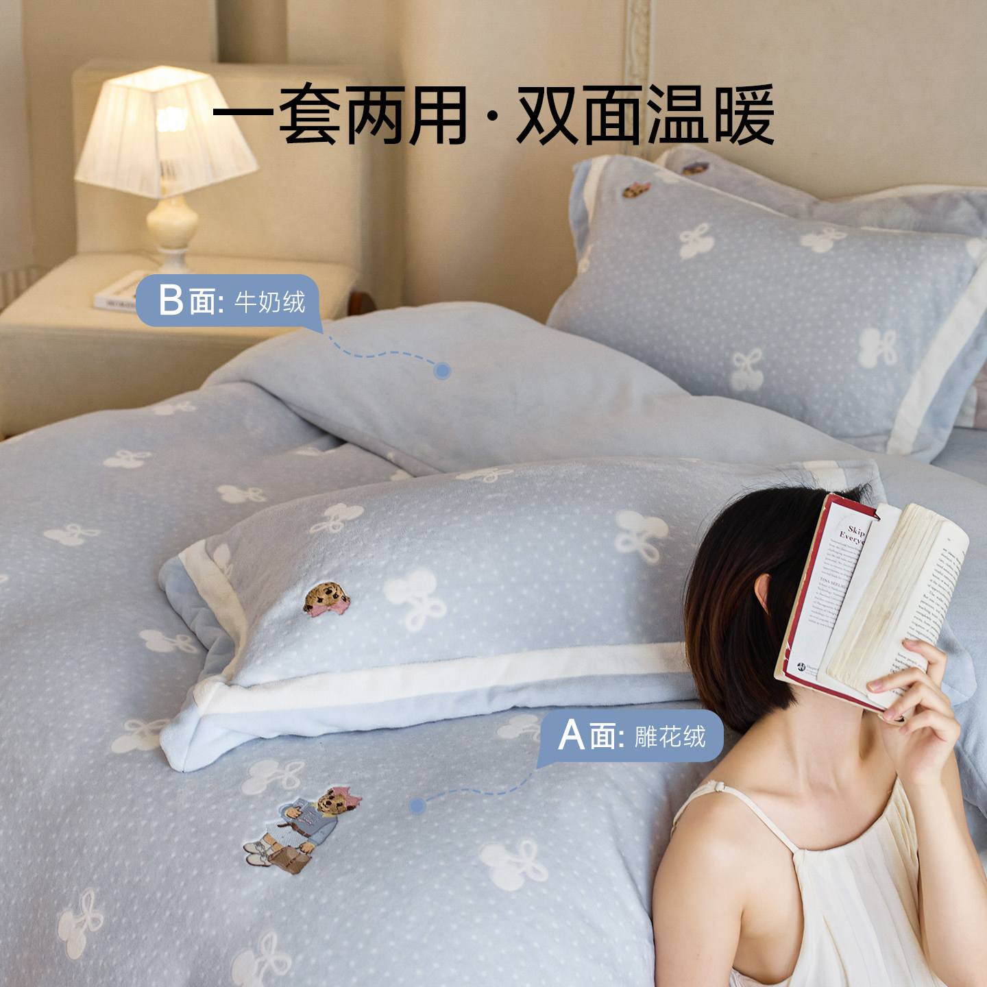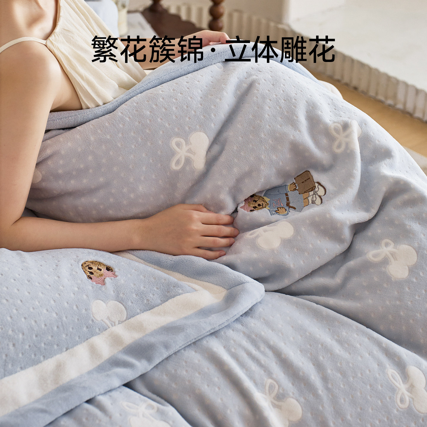 TeenieWeenie雕花牛奶绒四件套冬季加绒双面珊瑚绒床单被套法兰绒