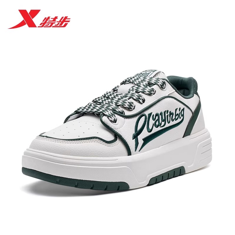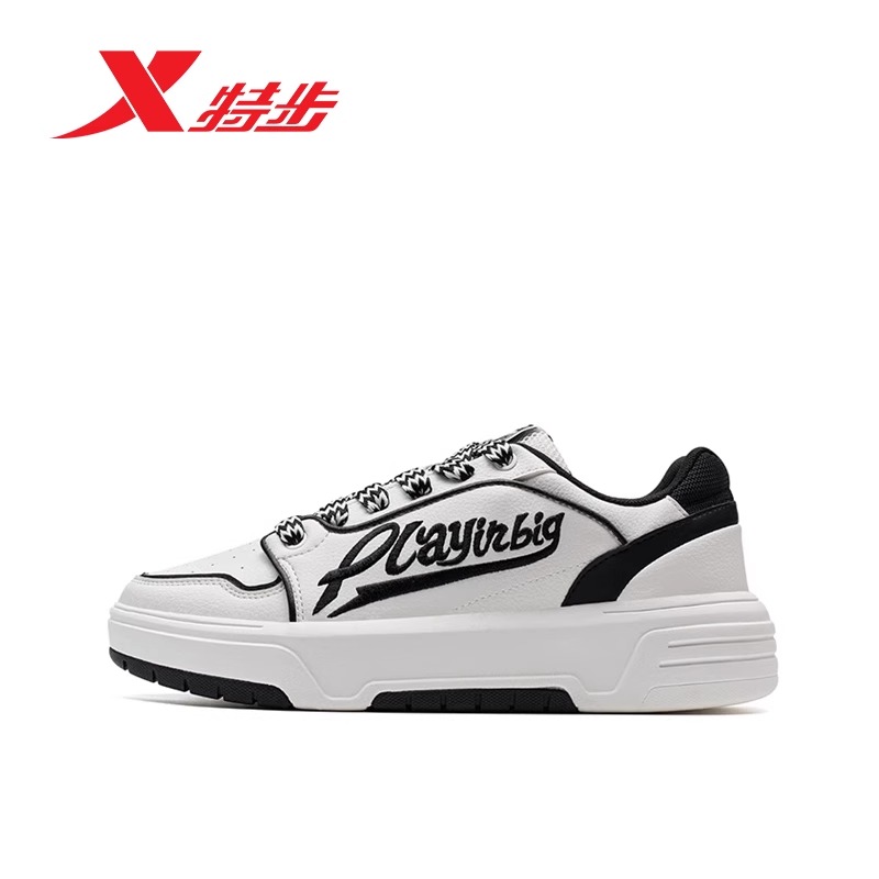 特步板鞋男鞋街头滑板鞋2024秋季新款低帮皮面休闲运动男士千层鞋