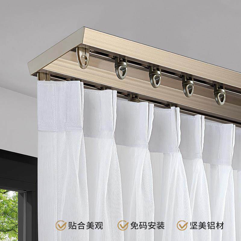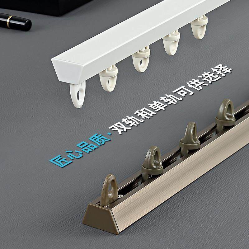 梁歌双杆铝合金窗帘轨道顶装滑轨双轨静音直轨导轨挂钩式飘窗路轨