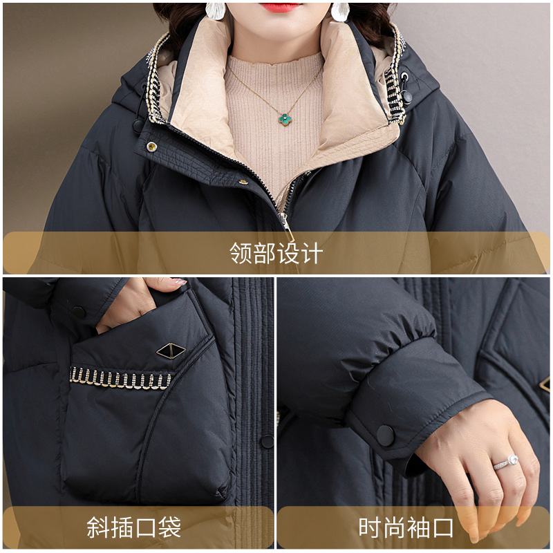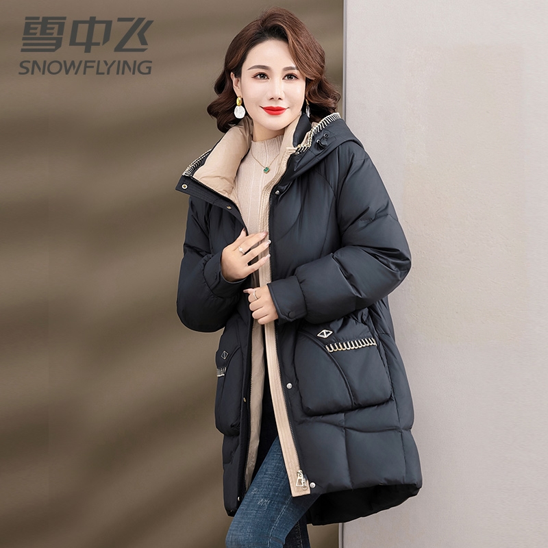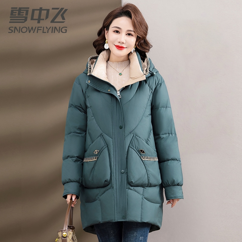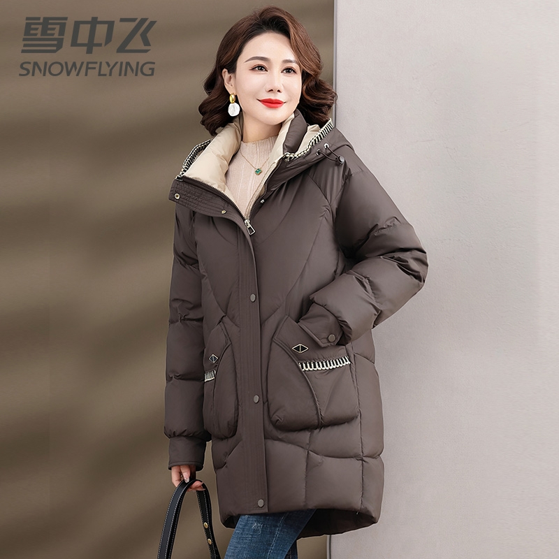 雪中飞中老年羽绒服女妈妈冬装洋气连帽中年妇女加厚宽松保暖外套