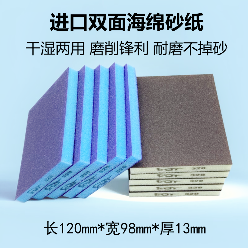 进口海绵砂纸双面海棉砂块耐磨家具木工油漆墙面打磨沙砖泡沫沙纸