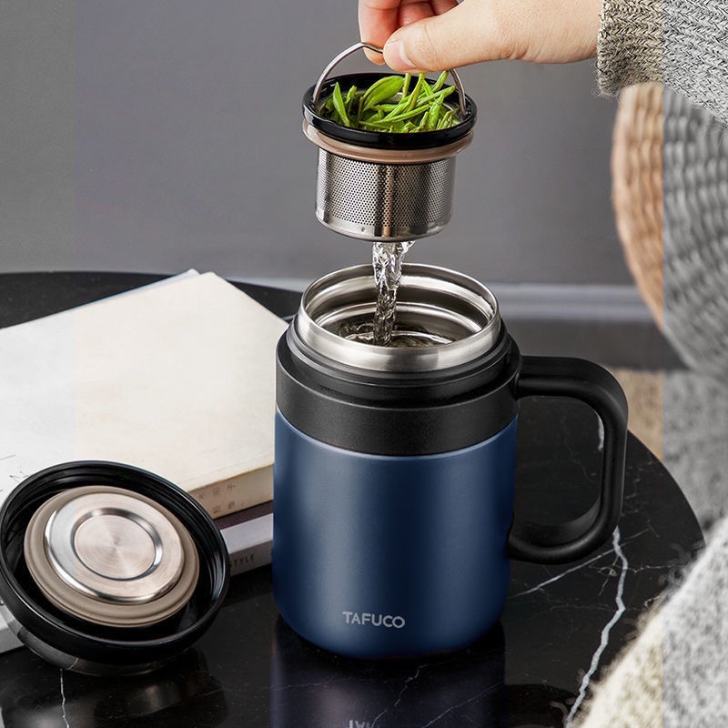日本泰福高316不锈钢保温杯办公杯男士大容量刻字带茶隔商务水杯