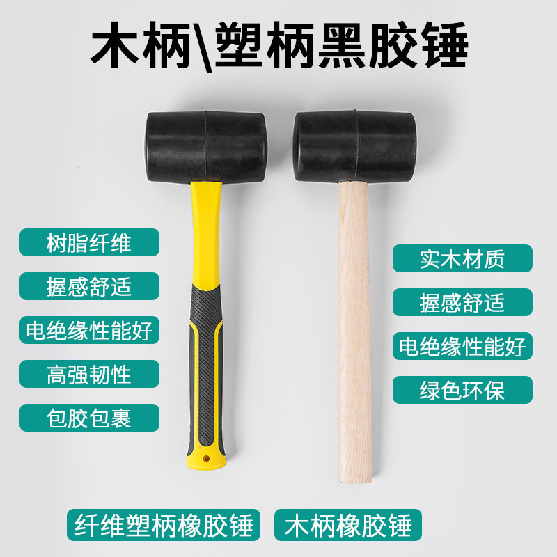 黑色木柄橡胶锤铺瓷砖地板安装锤头塑料胶锤子尼龙透明橡皮锤榔头