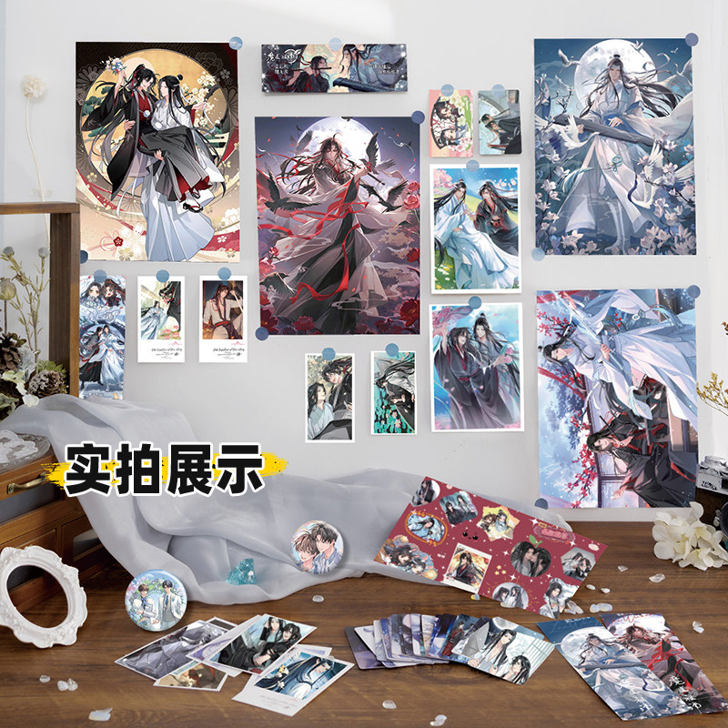 魔道祖师吧唧周边51件全套海报明信片镭射票贴纸吧唧照片大礼包