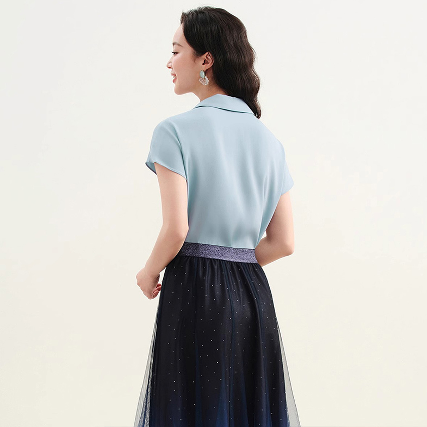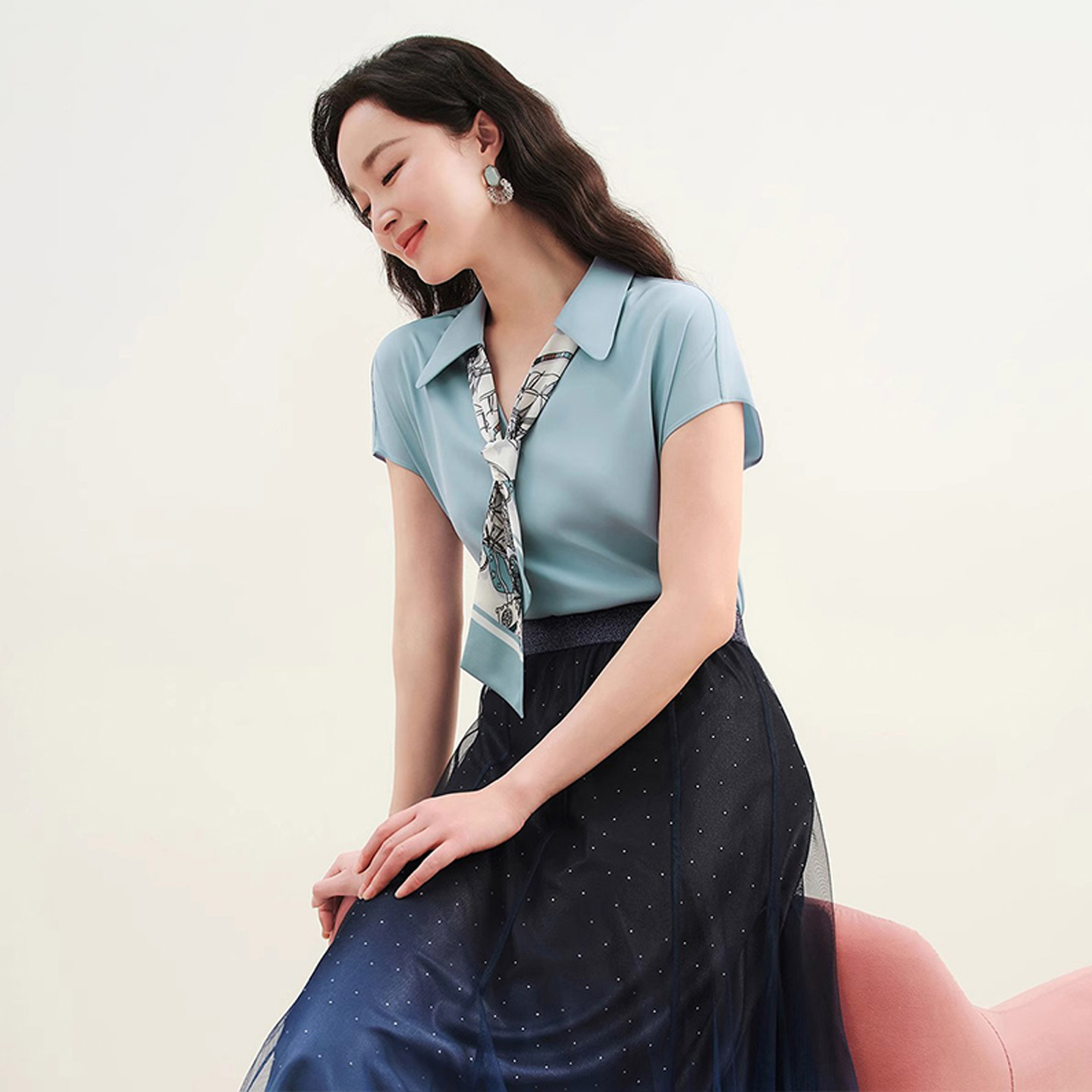 珂莱商场同款2025夏季新款短袖系带领透气舒适衬衫衣女 KD04242P5