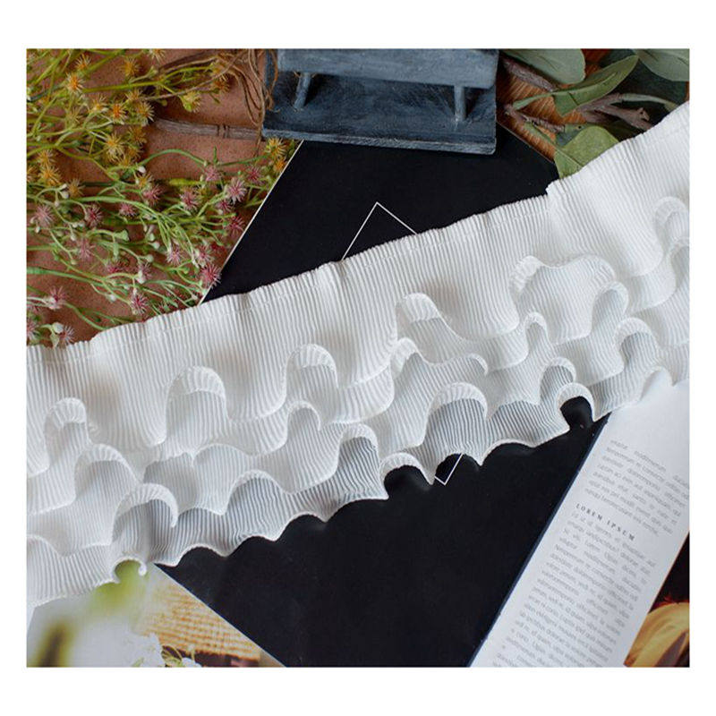 1米价 双层木耳皱褶花边 雪纺松紧花边 百褶裙边 DIY服装装饰辅料