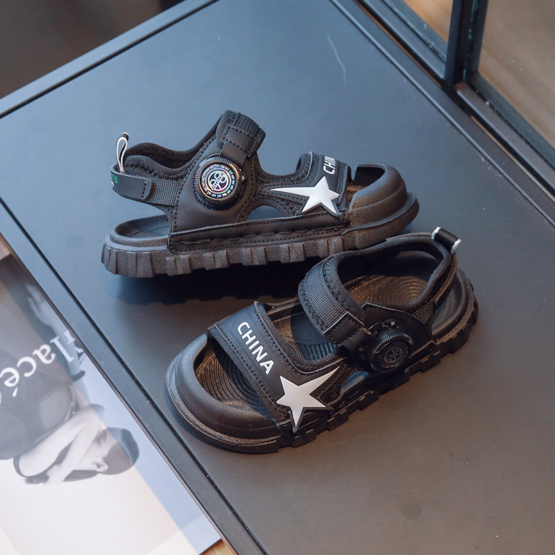 儿童凉鞋2025夏季新款男女孩旋转纽扣沙滩鞋中大童软底防滑凉拖潮