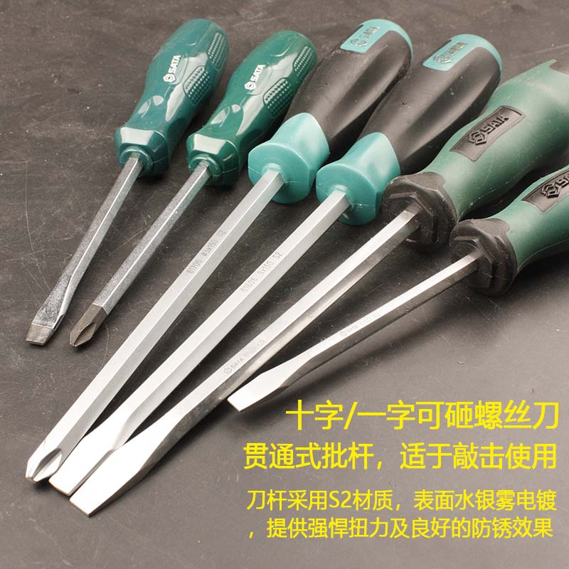 世达保用十字一字穿心螺丝刀 敲击螺丝批梅花平口冲击起子61603