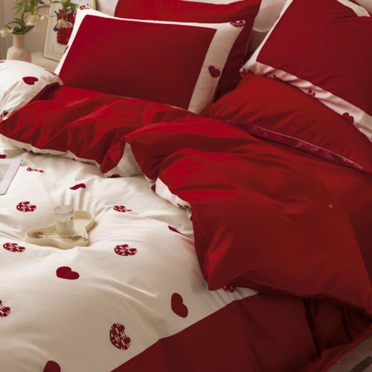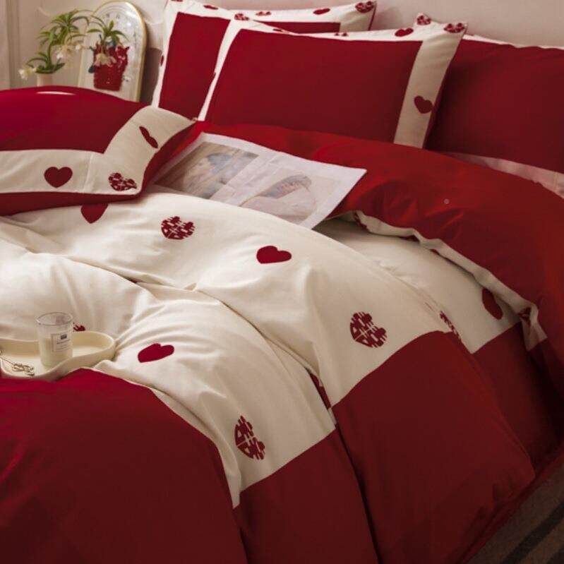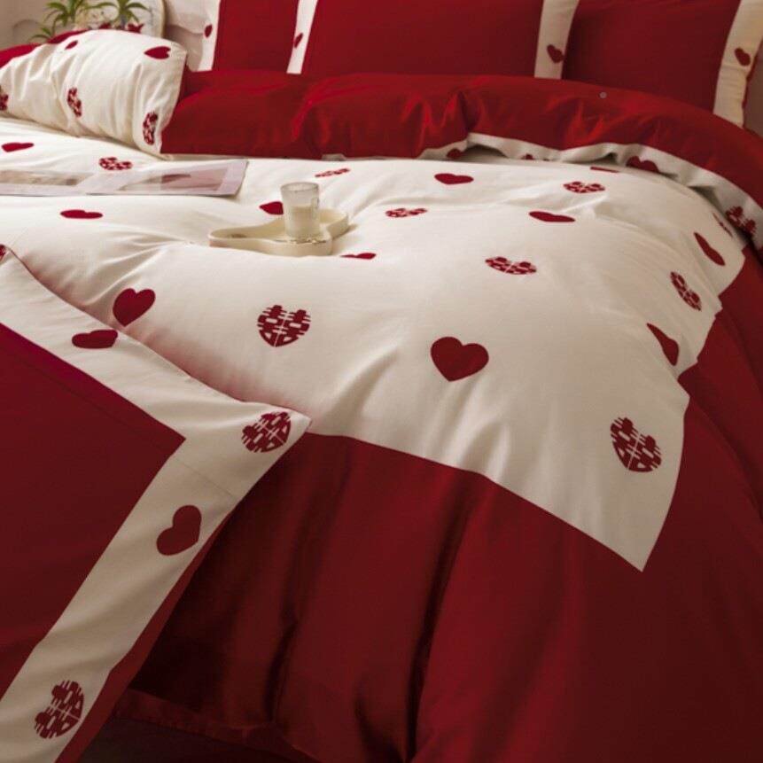 感婚结四套大红棉婚件庆床单被套新陪嫁喜被床FS757530上婚用jω