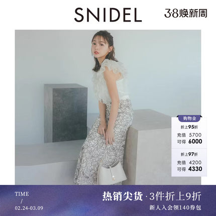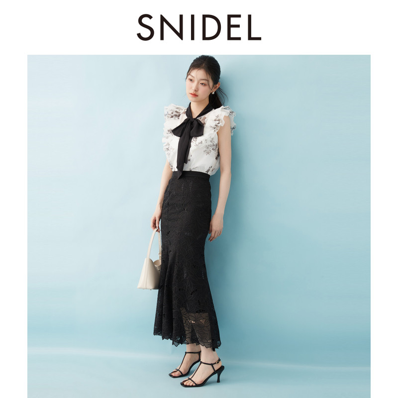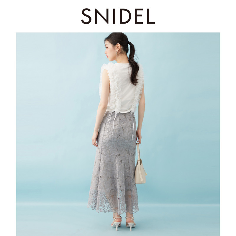 SNIDEL春夏款优雅百搭高腰蕾丝镂空钩花半身裙SWFS252012