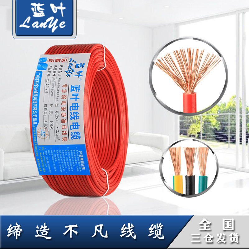蓝叶国标纯铜芯RV0.3/0.5平方单芯电线电子线细导线家用多股软线