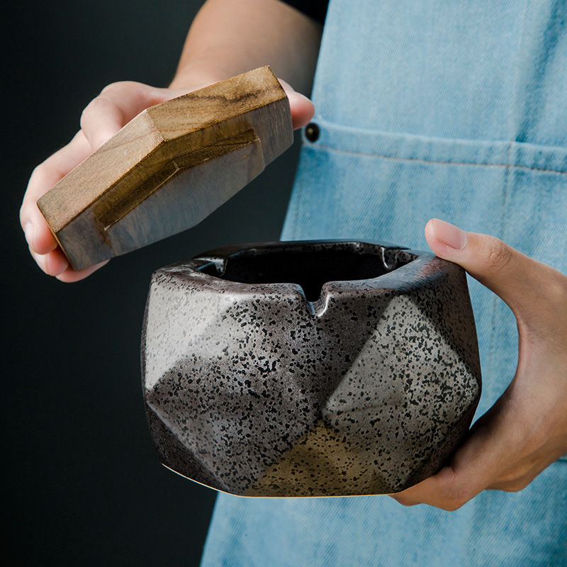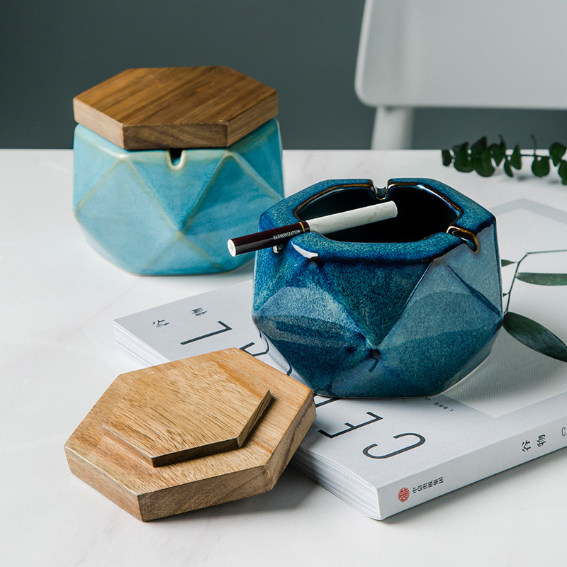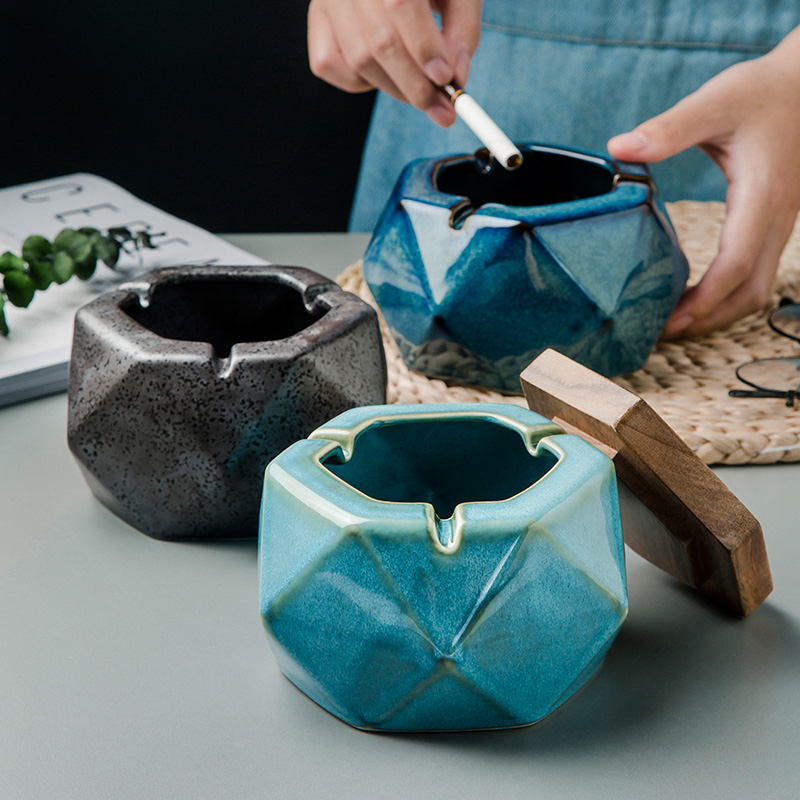 北欧时尚陶瓷烟灰缸带盖防风家用客厅办公室创意复古中式茶几烟缸