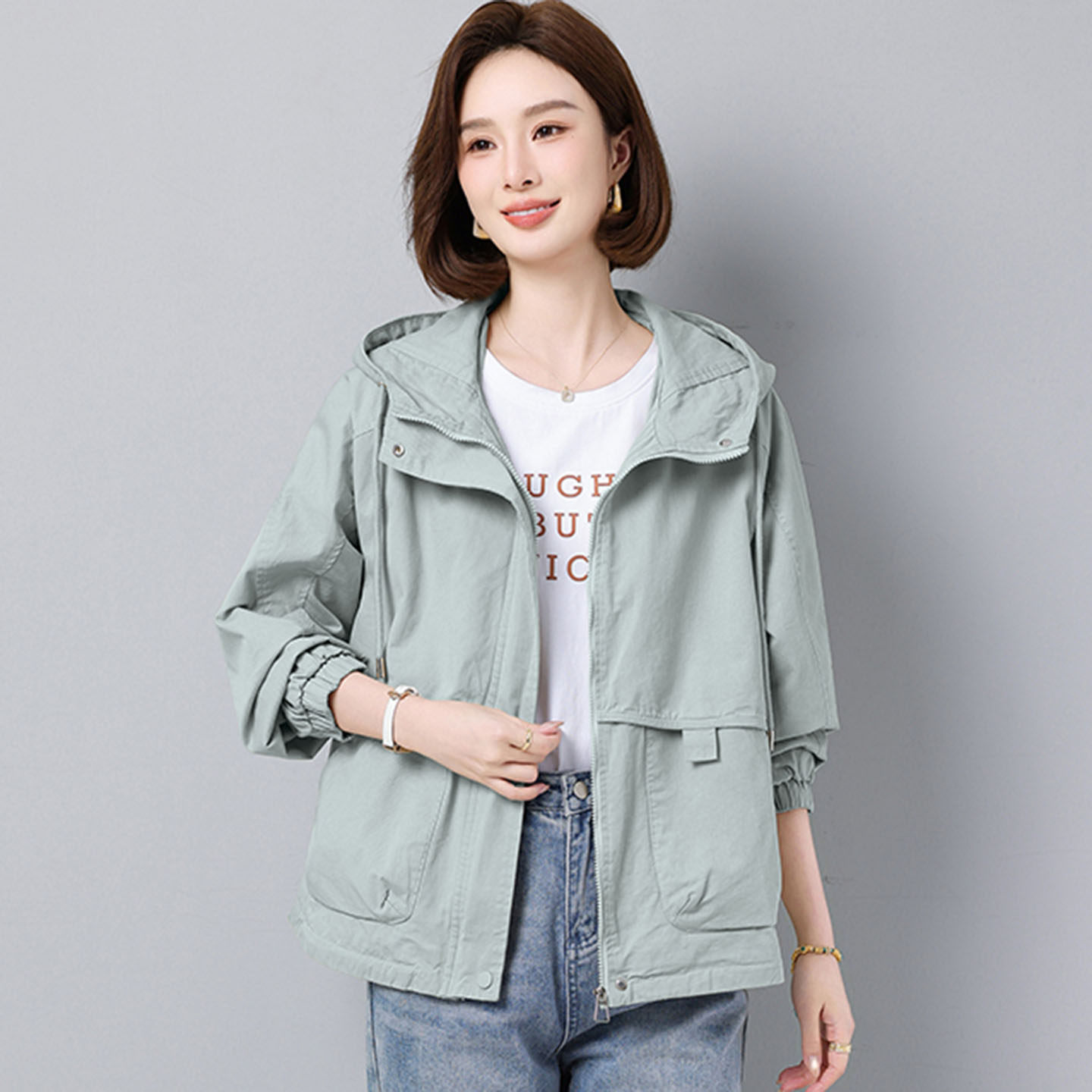 大码女装连帽外套女2025秋装新款胖MM妈妈装韩版宽松短款女士风衣