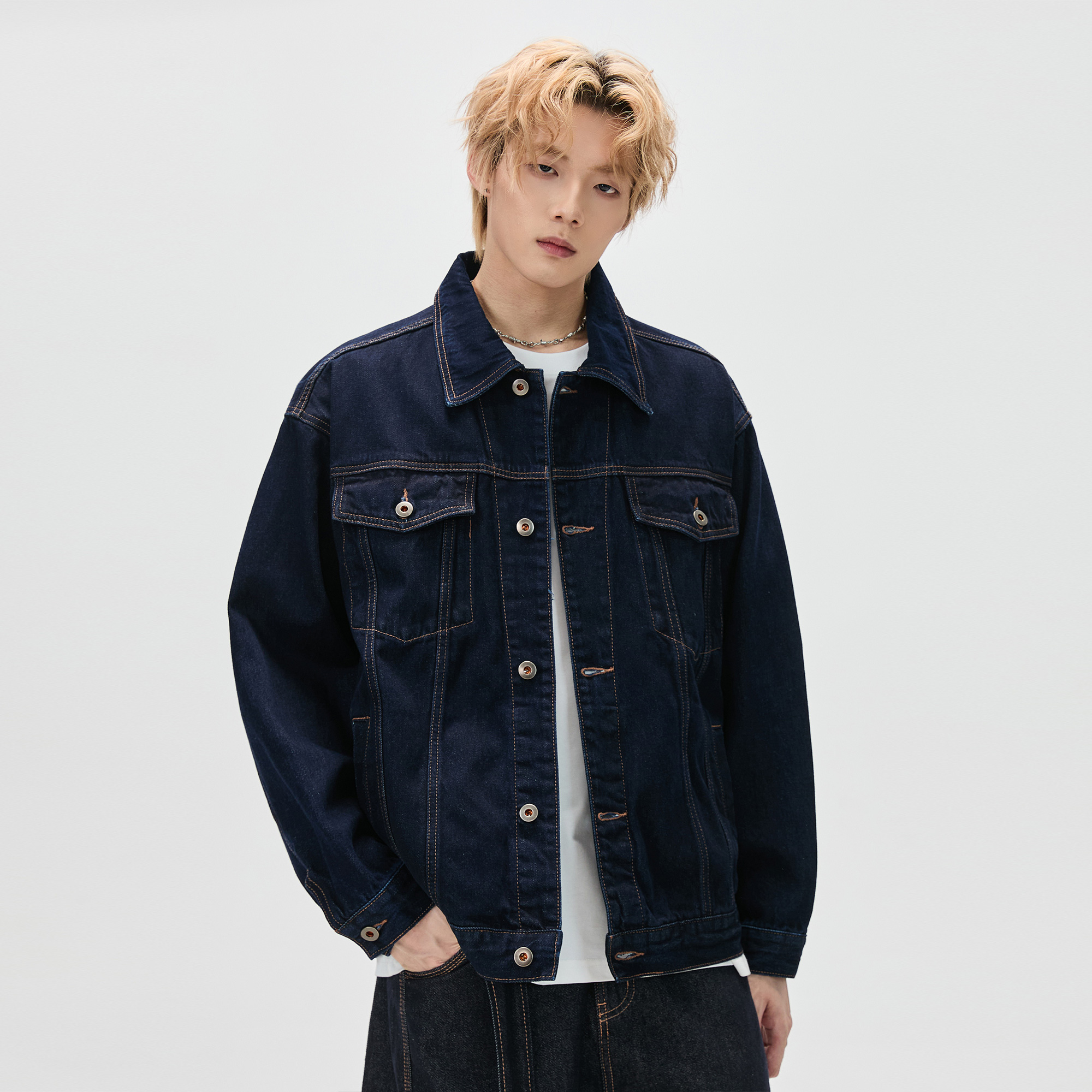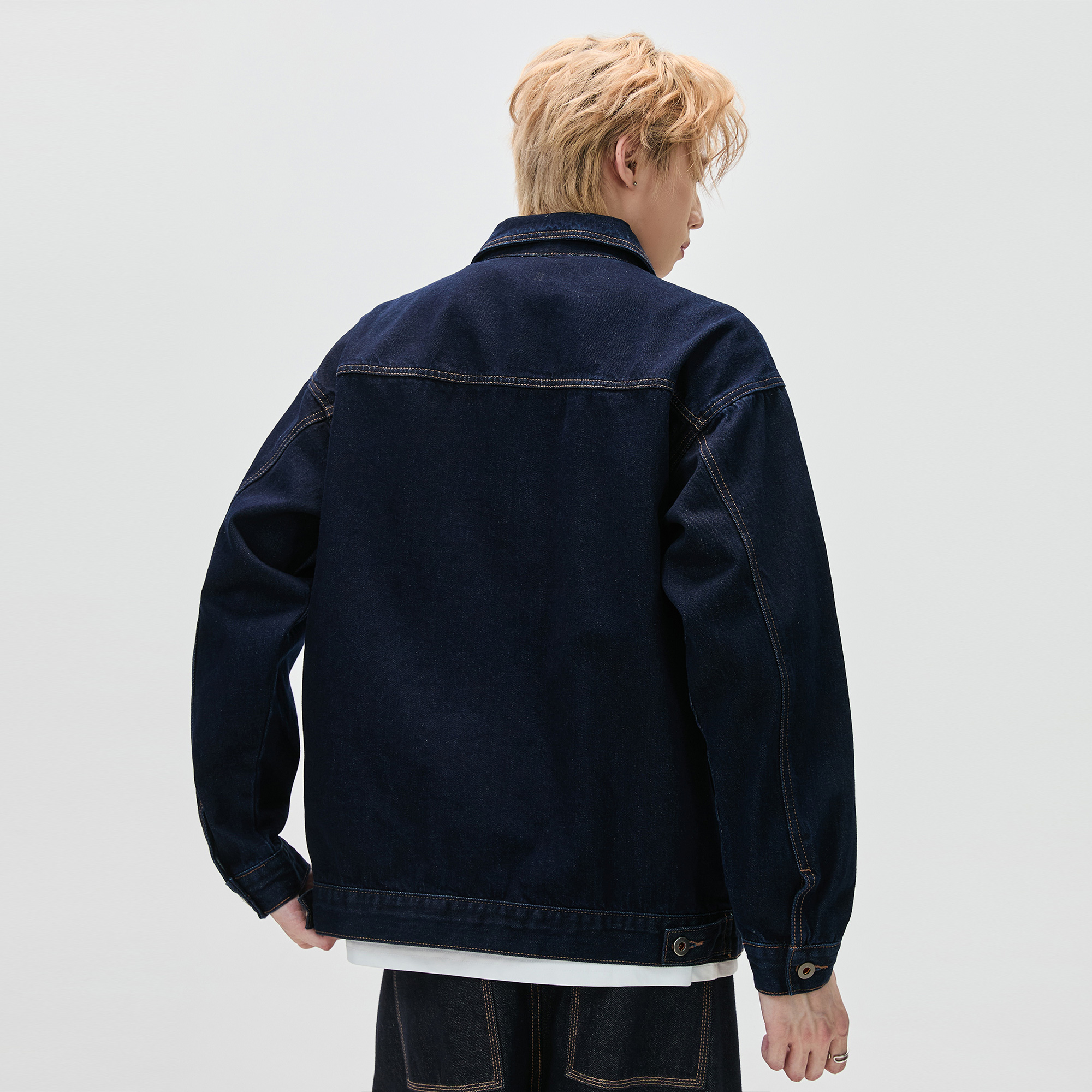 ALLIN 复古原牛深蓝色牛仔外套男秋季潮牌缉明线cleanfit翻领夹克