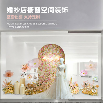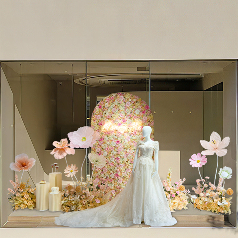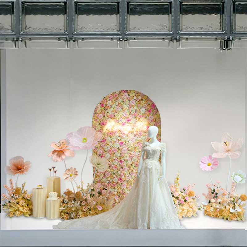 仿真玫瑰花造景婚纱店橱窗装饰轻奢高端网红打卡背景花墙场景布置