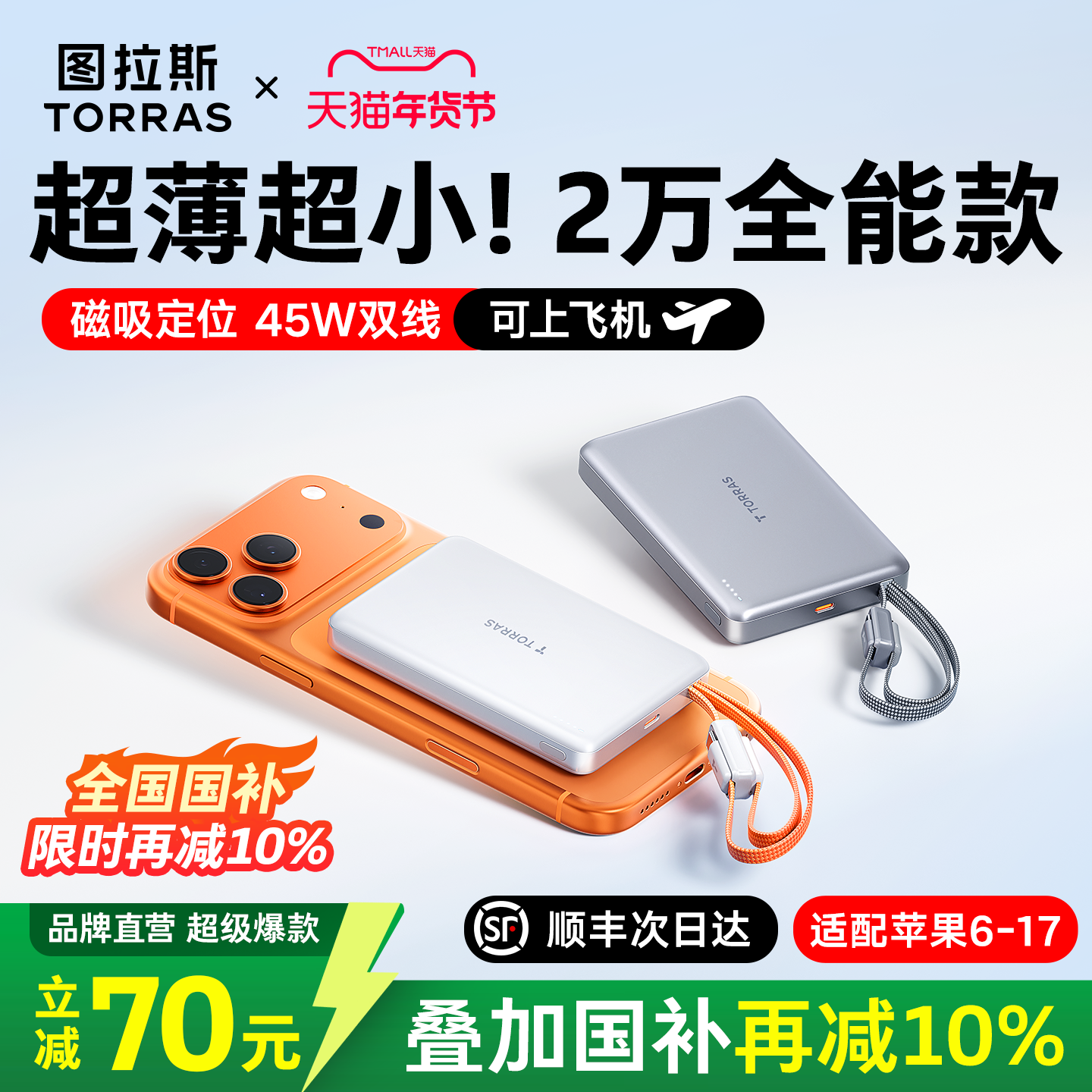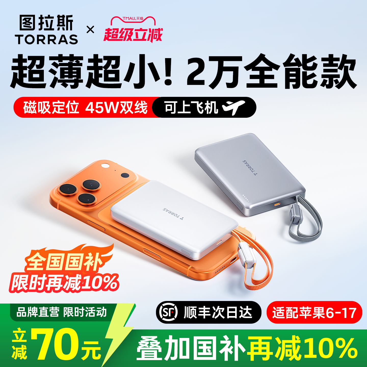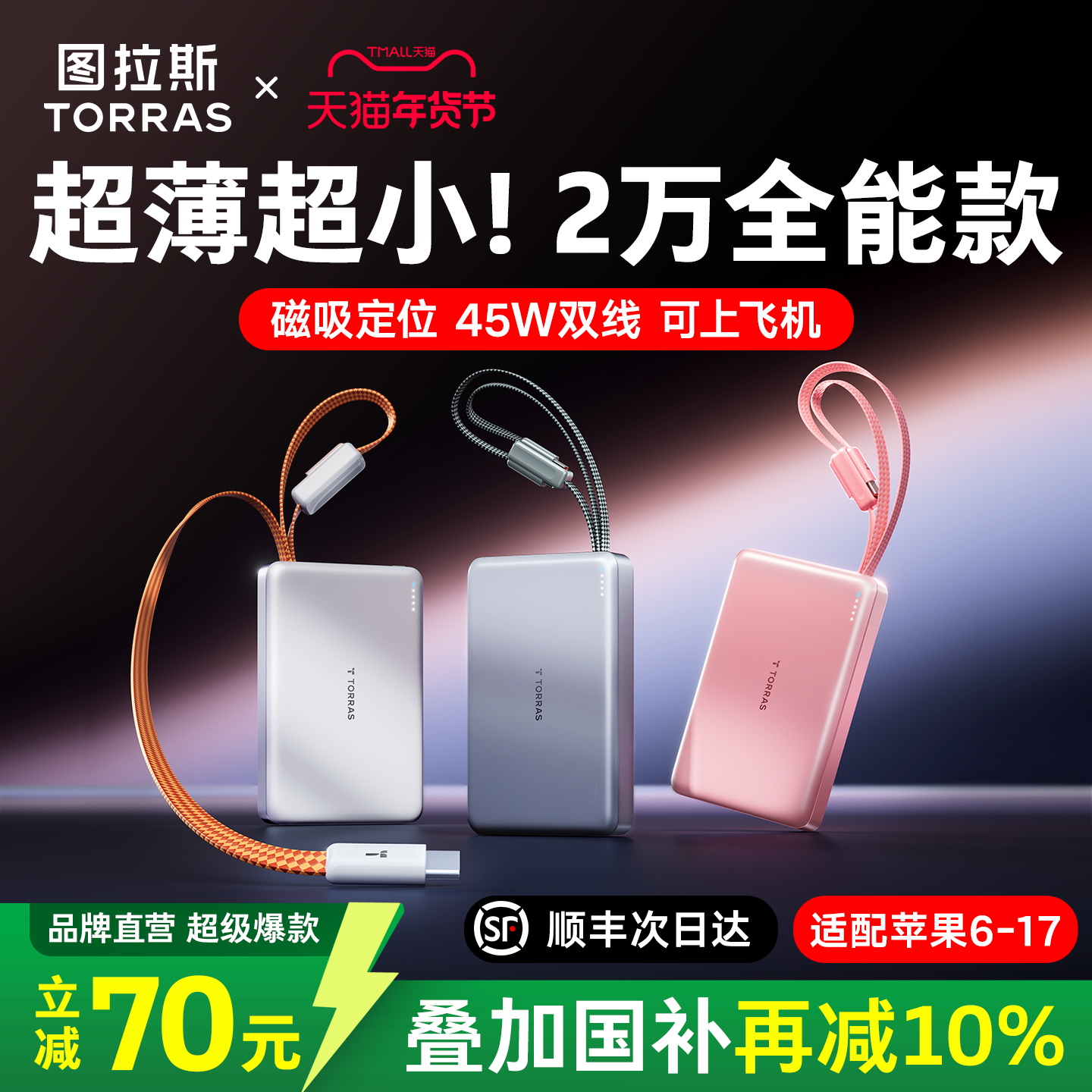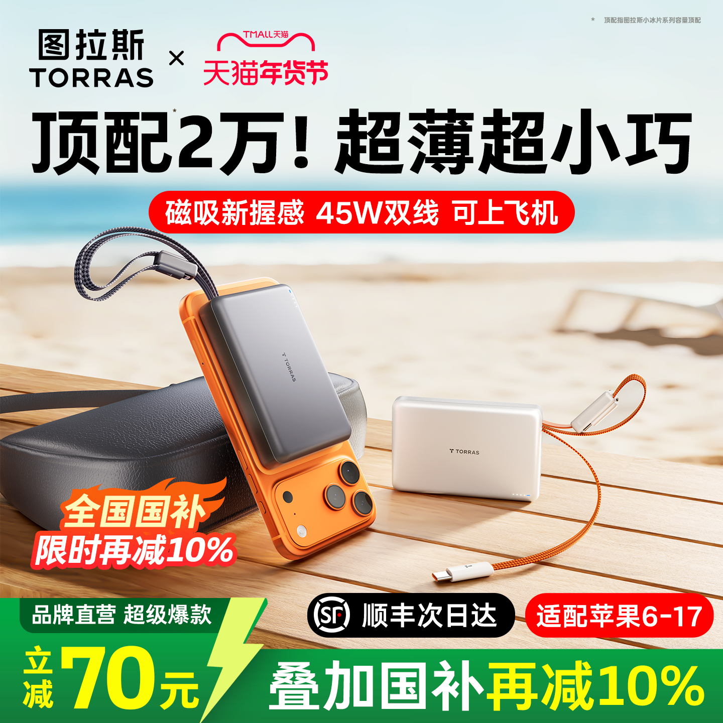 图拉斯20000毫安双线小冰片45W充电宝快充大容量2026新款3C认证可上飞机适用苹果17超薄小巧便携移动电源官方