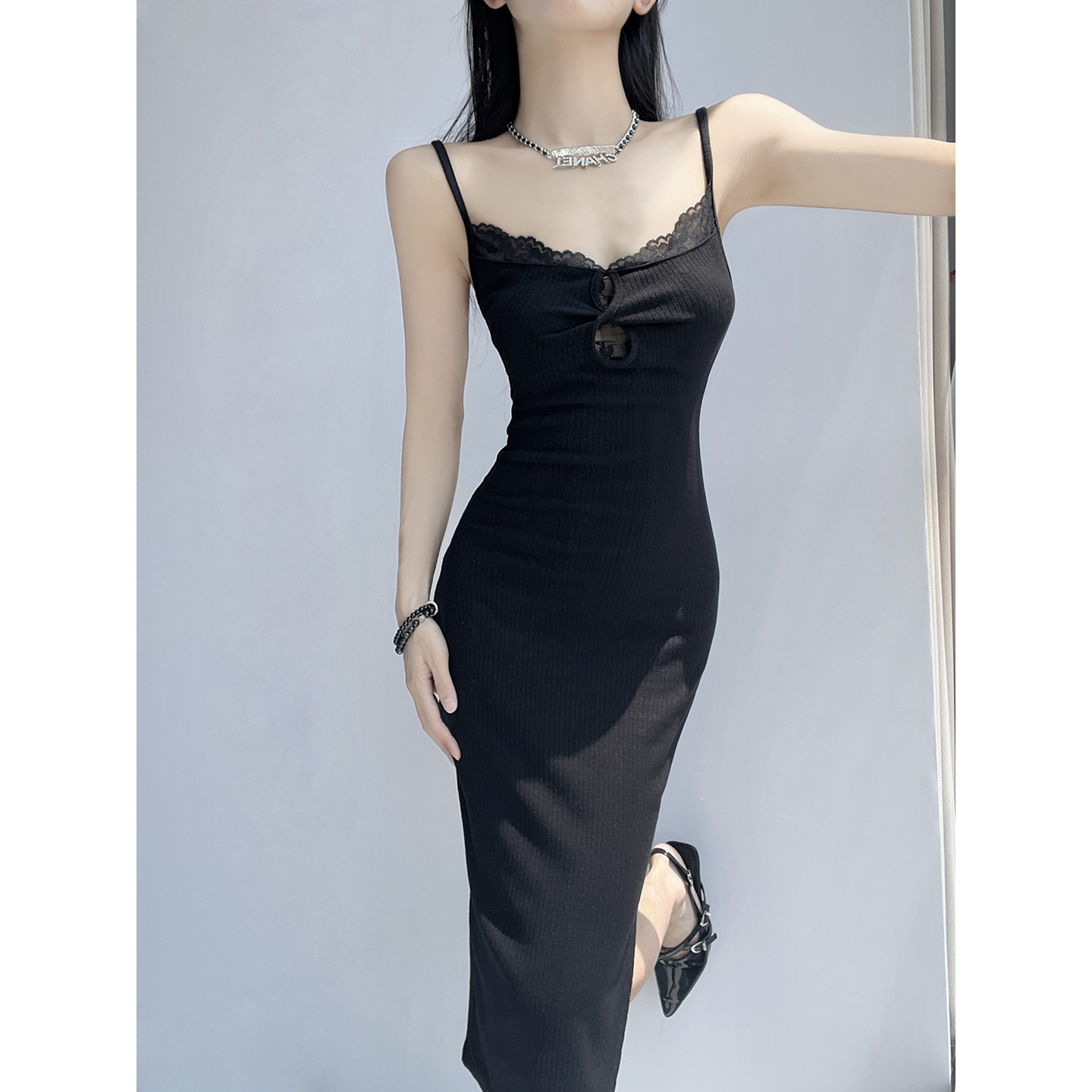 镂空设计吊带连衣裙女夏季