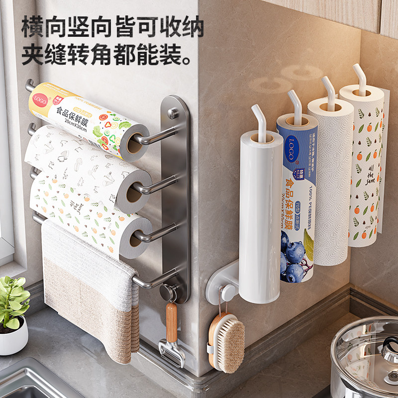 厨房纸巾架免打孔橱柜挂架保鲜膜袋多杆收纳抹布卷纸架墙上壁挂式