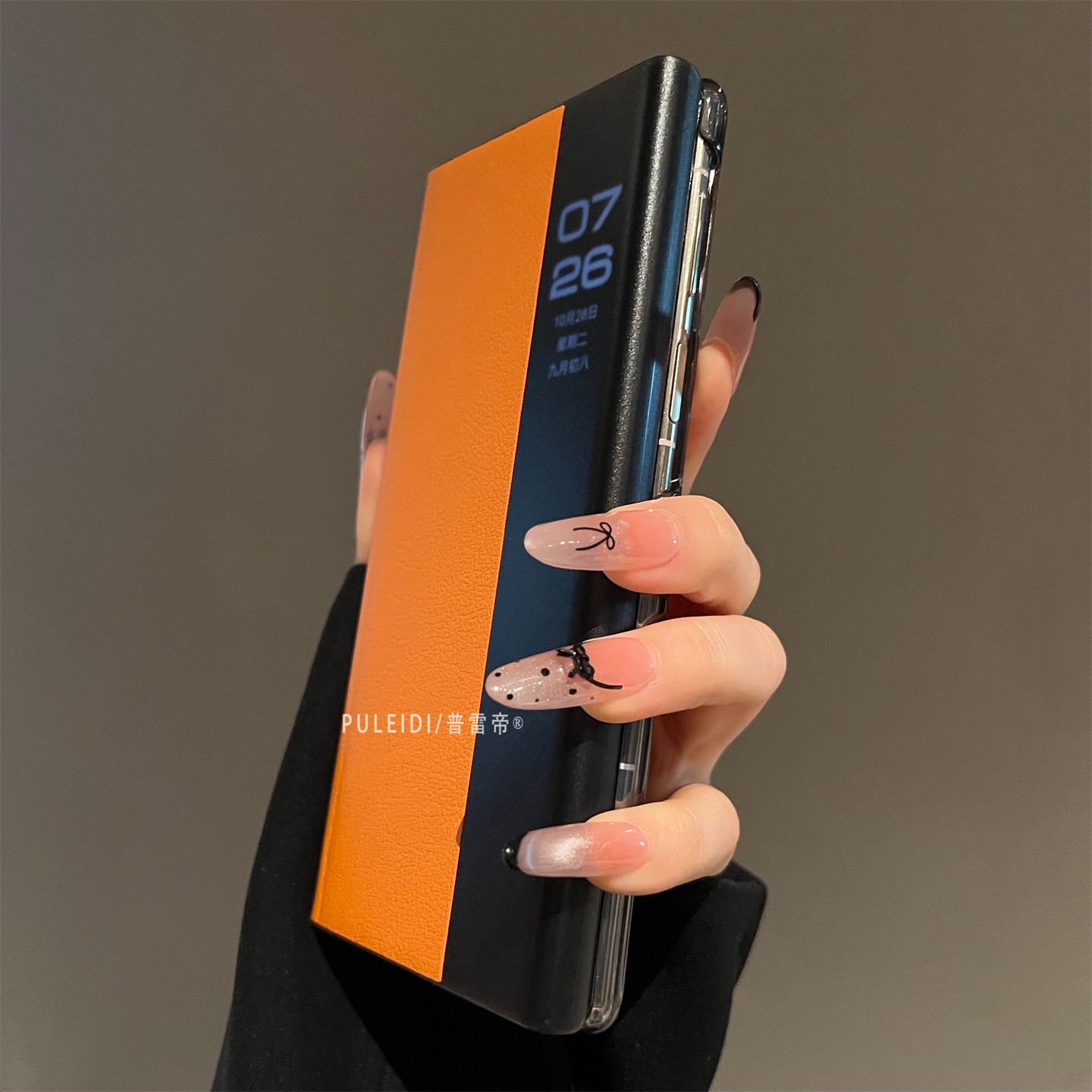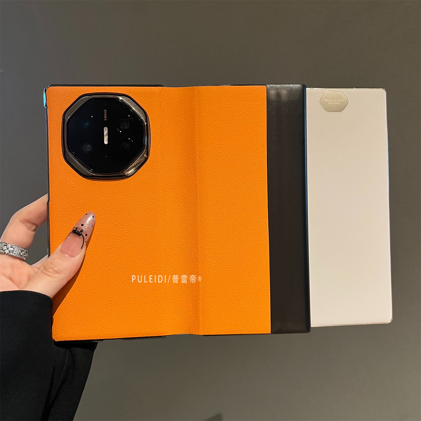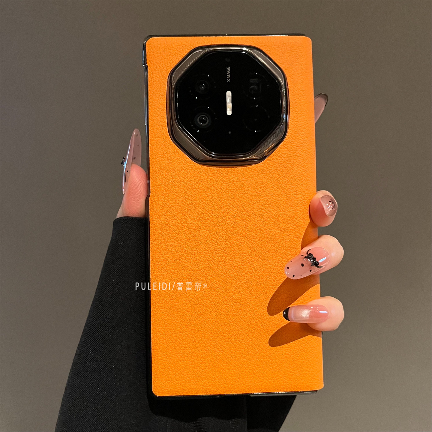 荔枝纹爱马仕橙适用华为MateXTs非凡大师三折叠屏手机壳简约高档MateXT全包防摔休眠保护套