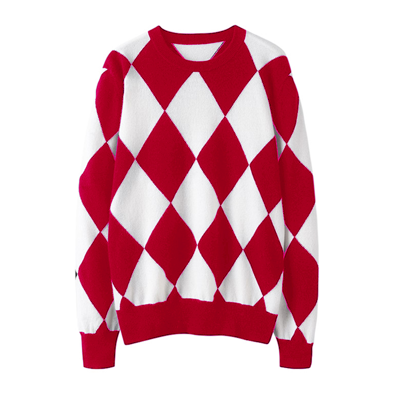 高端品牌!!菱格圆领山羊绒衫女纯羊绒毛衣打底针织衫宽松