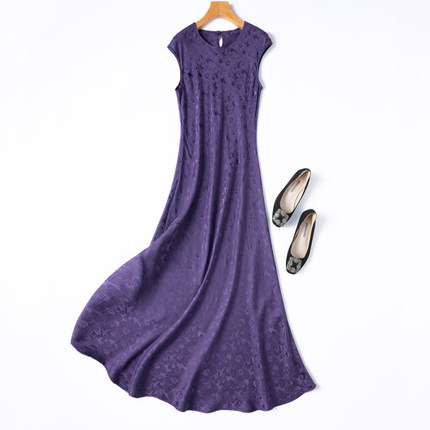 婀娜人鱼裙!显瘦斜裁!1.3米裙长!真丝圆领短袖鱼尾连衣裙长裙