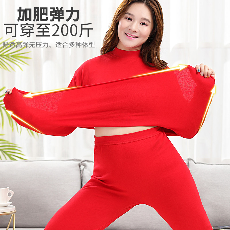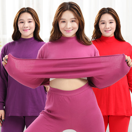 加肥加大女士保暖内衣半高领秋衣秋裤大码中老年宽松全棉毛衫套装
