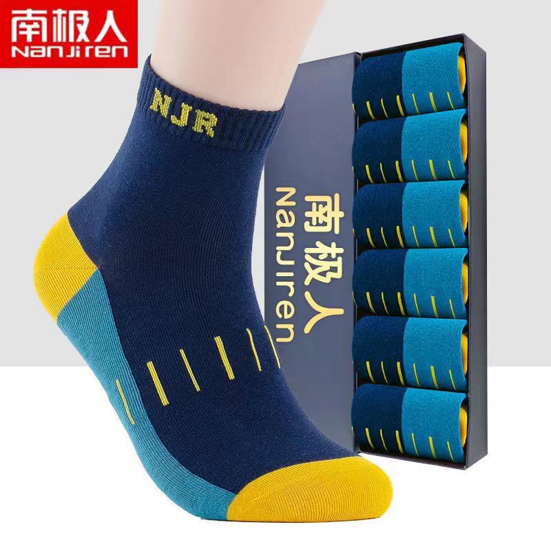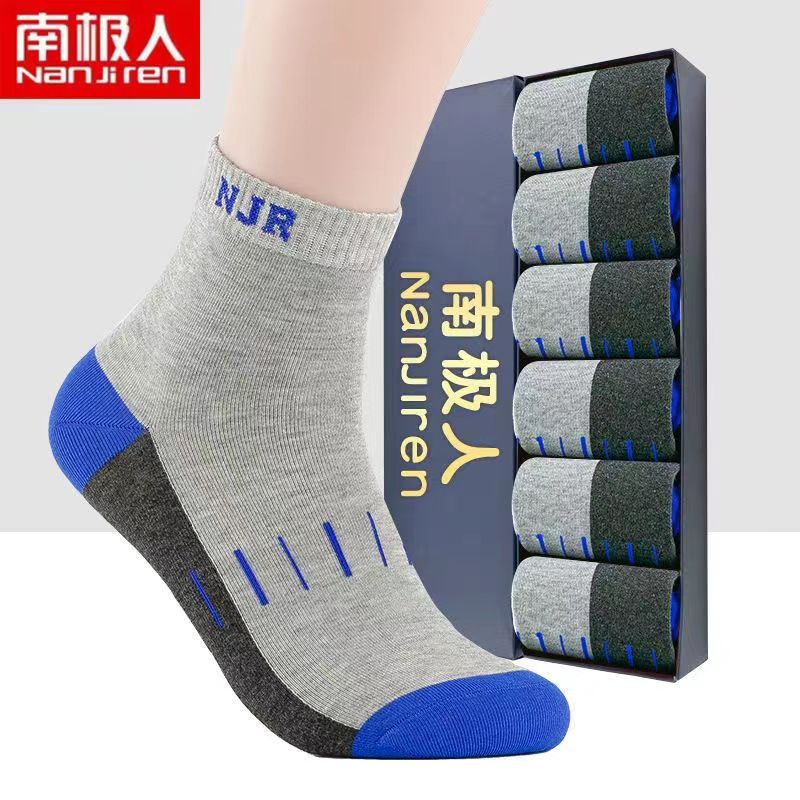 南极人袜子男士中筒纯棉防臭吸汗透气短袜春夏季长袜黑色商务男袜