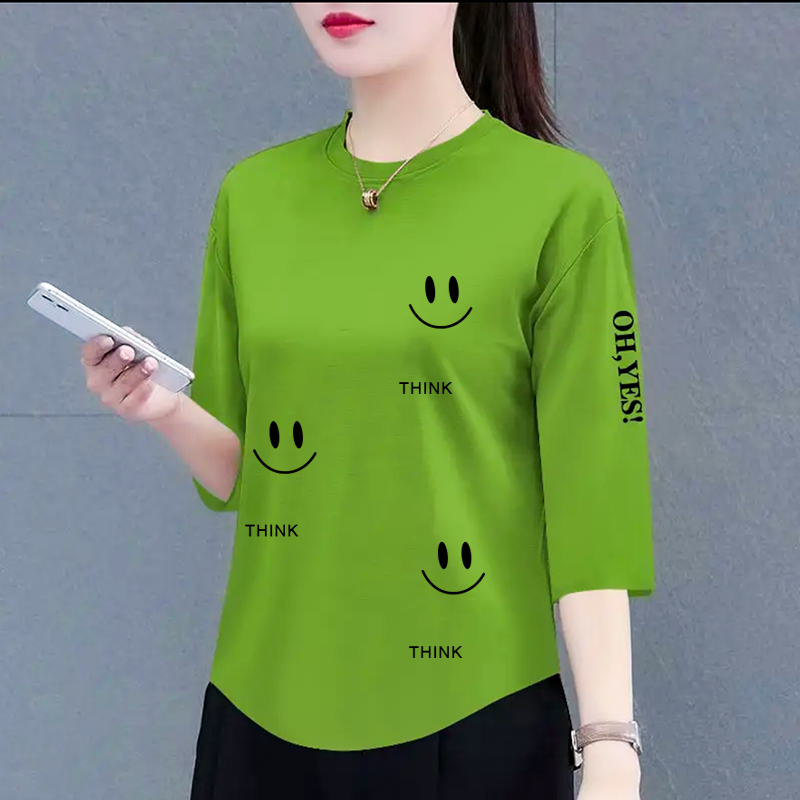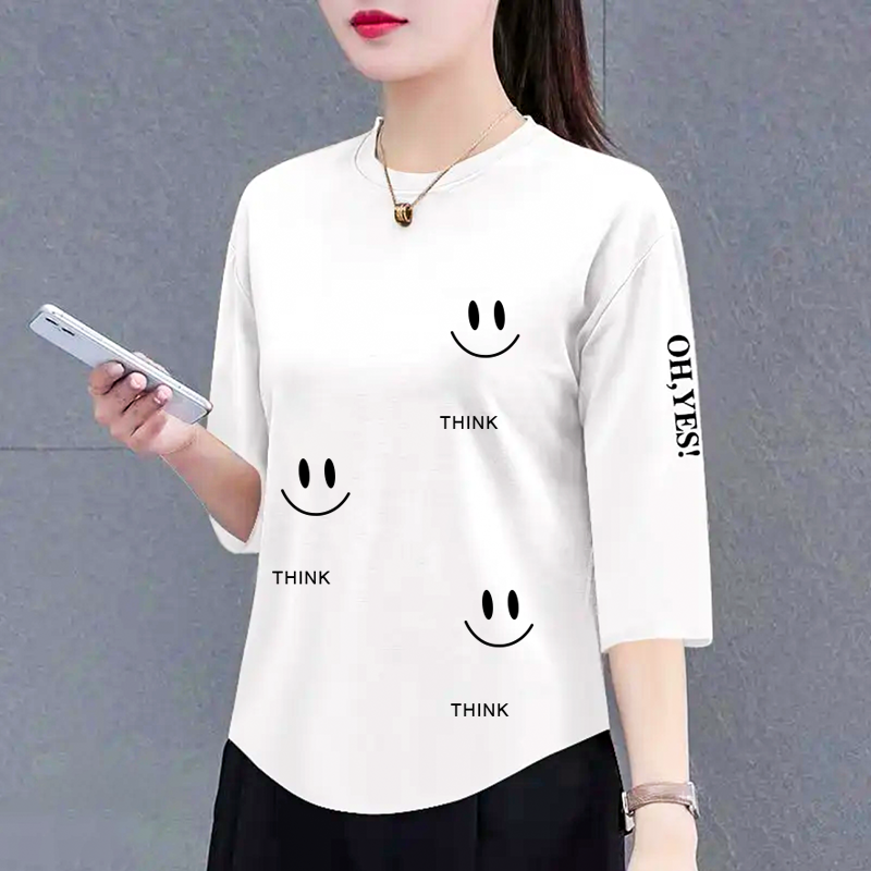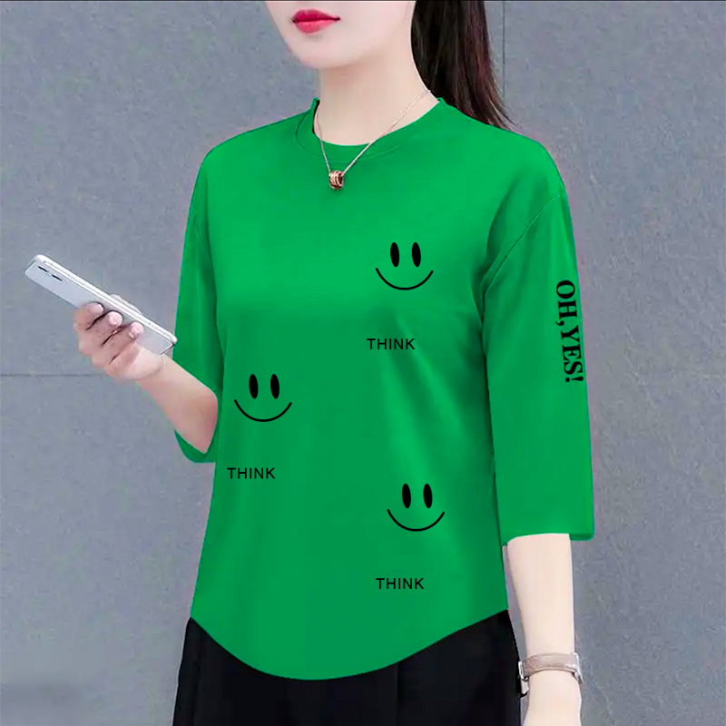 2025新款七分袖高档中年t恤女士春夏韩版洋气宽松遮肉上衣体恤衫