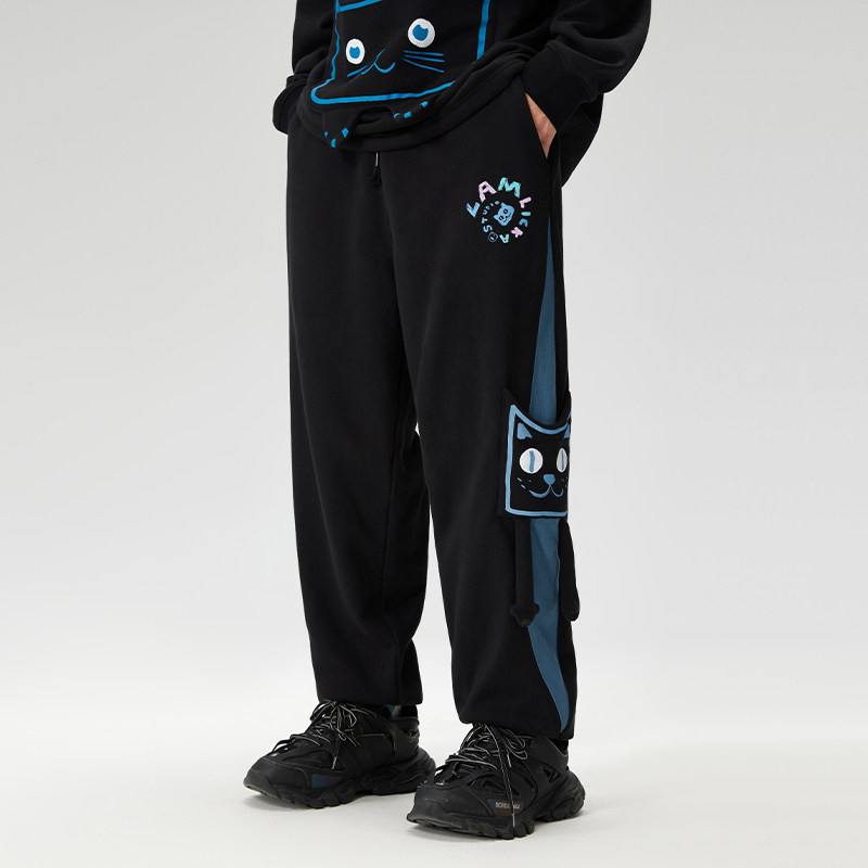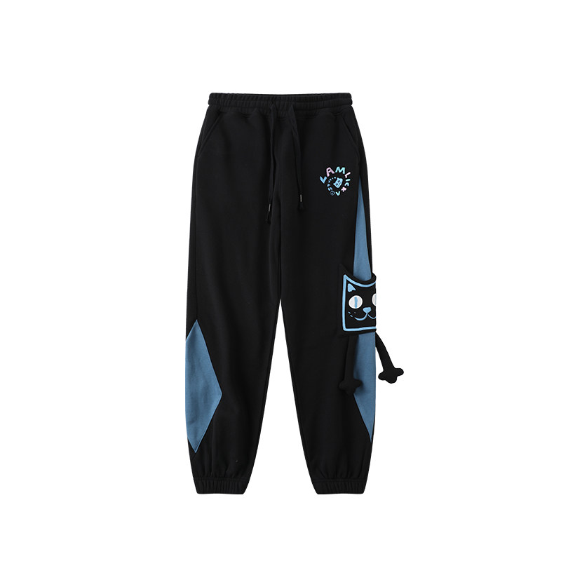 LAMLICKA撞色小猫卫裤潮牌休闲运动裤子宽松束脚加绒长裤情侣款