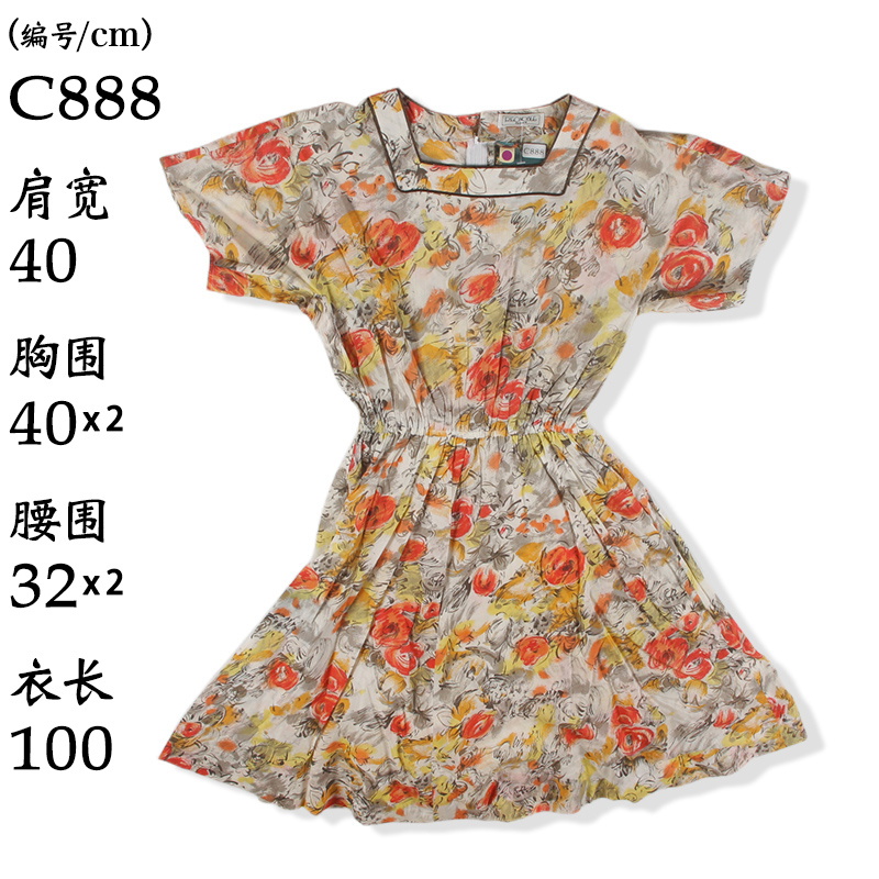古着vintage复古日森系外贸夏小清新吊带法式碎印花雪纺连衣裙071