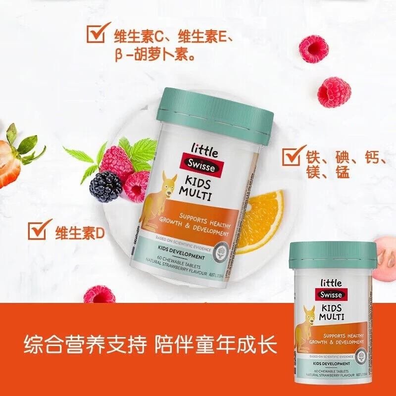 Swisse斯维诗合版进口儿童小袋鼠复合维生素咀嚼片60片维生素D3