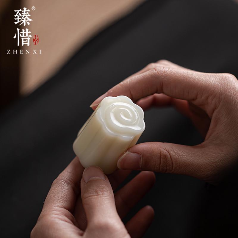 A947浮雕祥云玉石盖置实心盖托陶瓷家用紫砂壶盖子架茶壶茶道配件